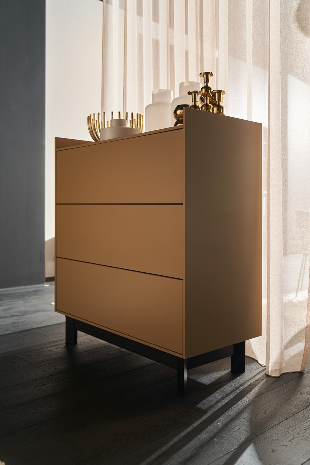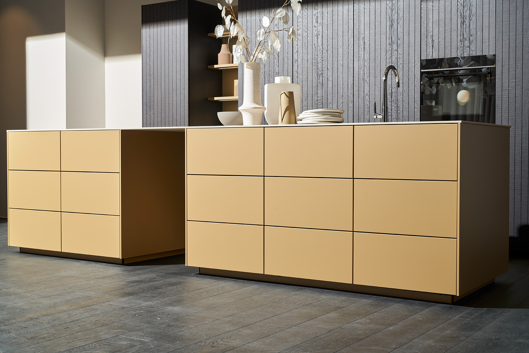 Exkluzívna predná časť neoCHALET z drážkovaného moka dubu prináša do kuchyne rustikálny nádych s moderným nádychom. Drážkovaná textúra prednej časti vytvára fascinujúci hmatový zážitok a zároveň sprostredkúva prirodzenú, útulnú atmosféru. Bezúchytkový dizajn MatrixZERO zdôrazňuje minimalistický, decentný charakter.