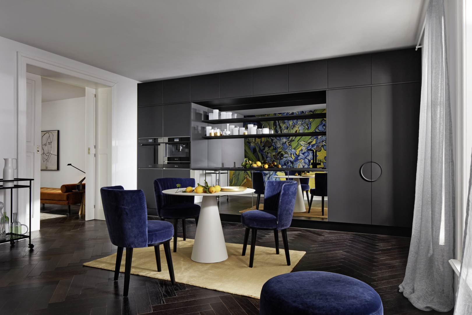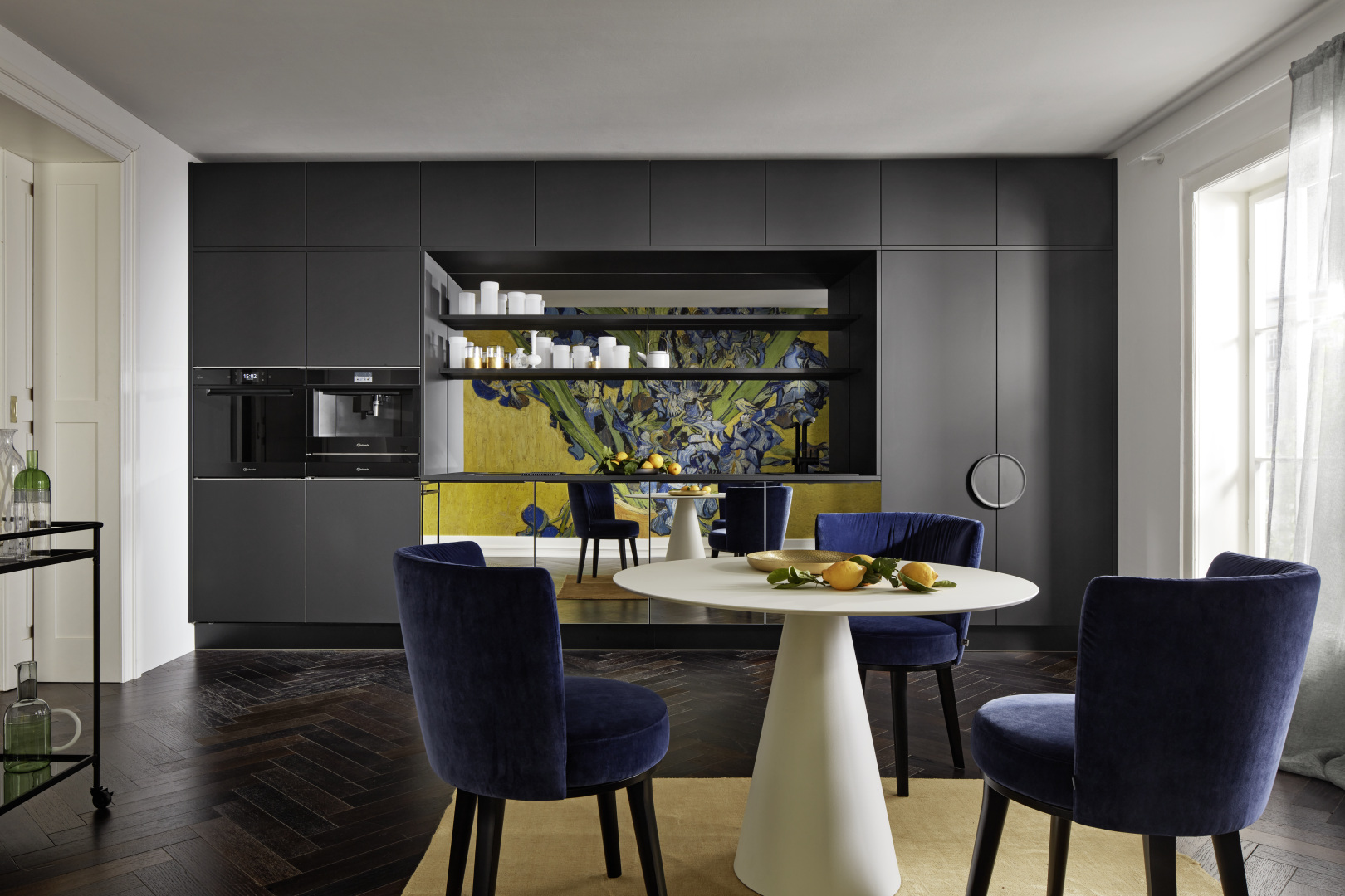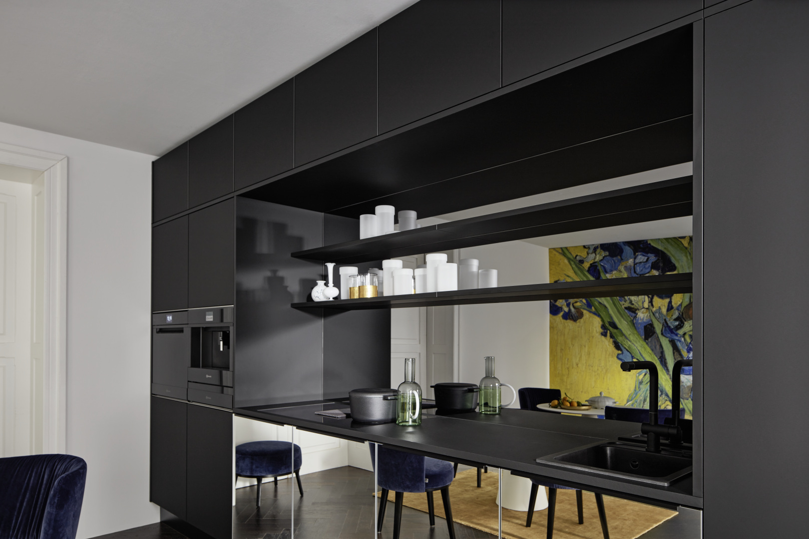 Taký nenápadný, že ho takmer nevidíte, no taký nápadný, že nemôžete ani uhnúť pohľadom – tento kuchynský komplet je skutočným majstrovským dielom, ktoré je dokonale integrované do priestoru a je dokonalým príkladom malej kuchyne so všetkými možnosťami veľkej kuchyne. Zvláštnym prvkom je predná časť neoMIRROR, ktorá odráža extravagantný dizajn kuchyne a kopíruje ho s umeleckou kompetenciou.