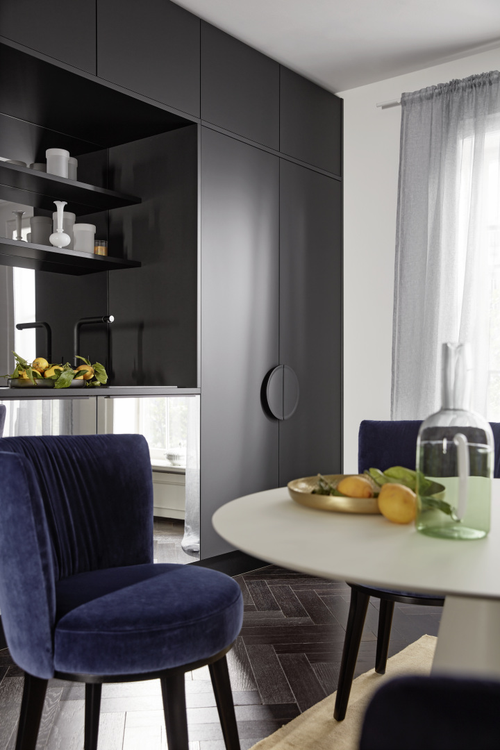 Taký nenápadný, že ho takmer nevidíte, no taký nápadný, že nemôžete ani uhnúť pohľadom – tento kuchynský komplet je skutočným majstrovským dielom, ktoré je dokonale integrované do priestoru a je dokonalým príkladom malej kuchyne so všetkými možnosťami veľkej kuchyne. Zvláštnym prvkom je predná časť neoMIRROR, ktorá odráža extravagantný dizajn kuchyne a kopíruje ho s umeleckou kompetenciou.