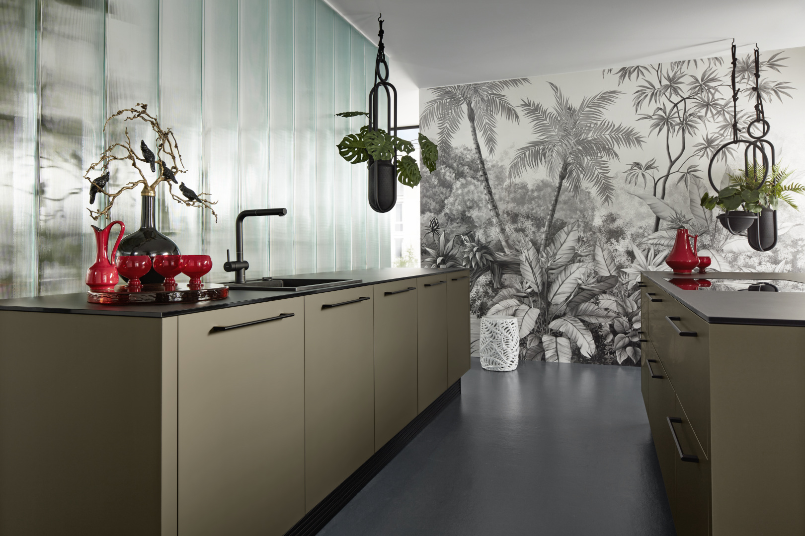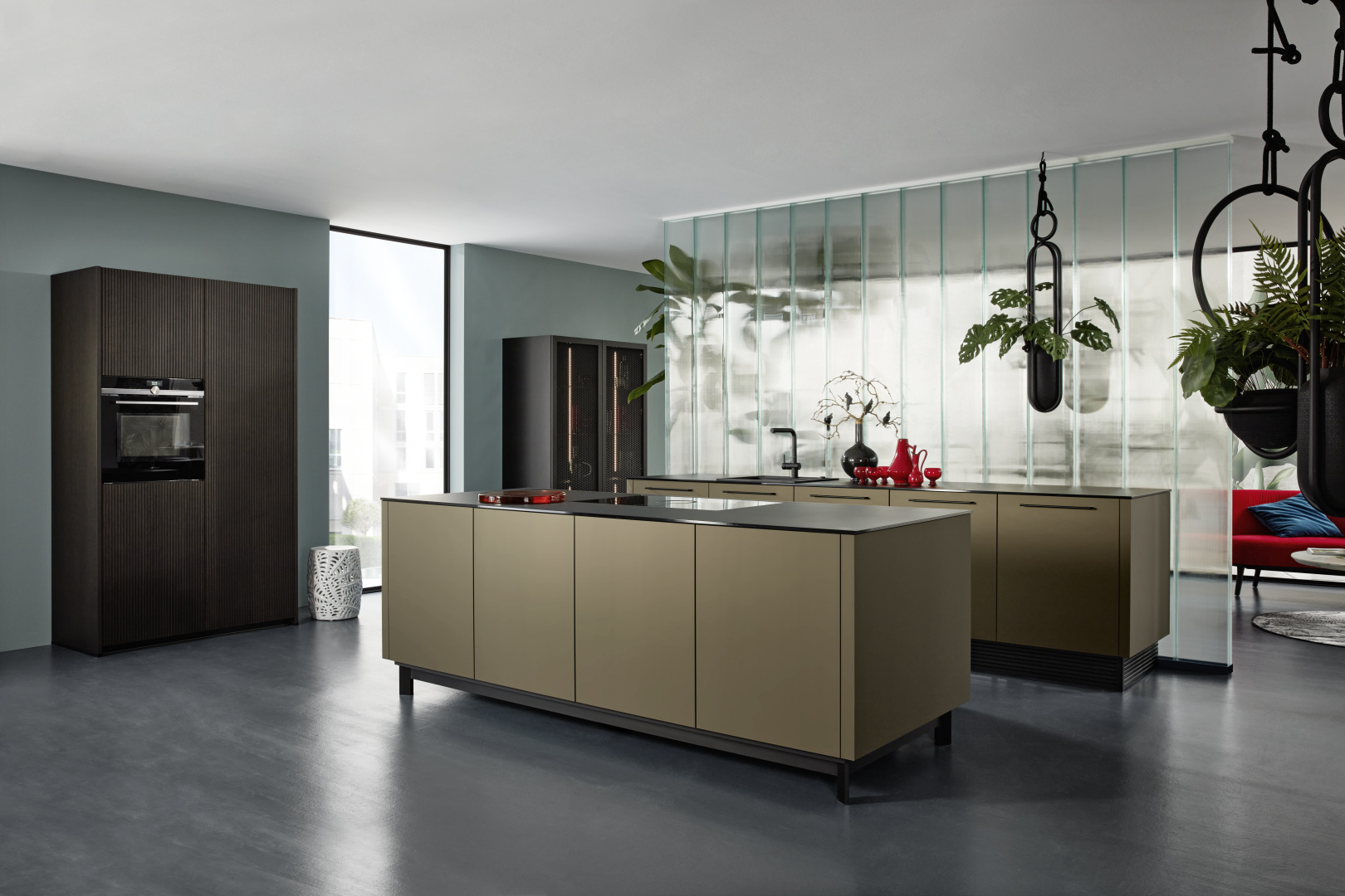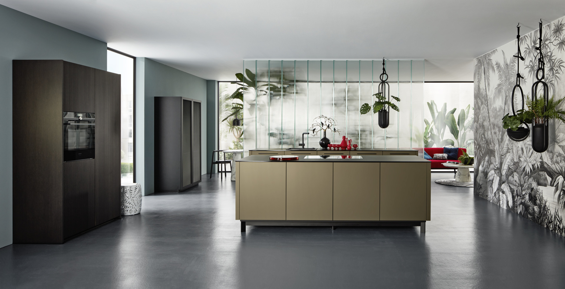 Táto kuchyňa, ktorá vstupuje na scénu v rôznych materiáloch, sa zdá byť zasadená do prostredia mestskej džungle s umeleckým majstrovstvom. Otvorený štýl a absencia nástenných dielov vykúzli pocit slobody a priestrannosti. V tomto scenári upúta pozornosť nie jeden, ale niekoľko prvkov v dizajnérskom štýle nolteneo. Predná časť neoPURE v kovovej zlatej farbe, ktorá dopĺňa vysoké jednotky neoGRID a štýl podkrovia neoLODGE, vytvára teplý kontrast a zároveň podčiarkuje moderný vzhľad tejto kuchyne prostredníctvom soklovej časti varného ostrova.