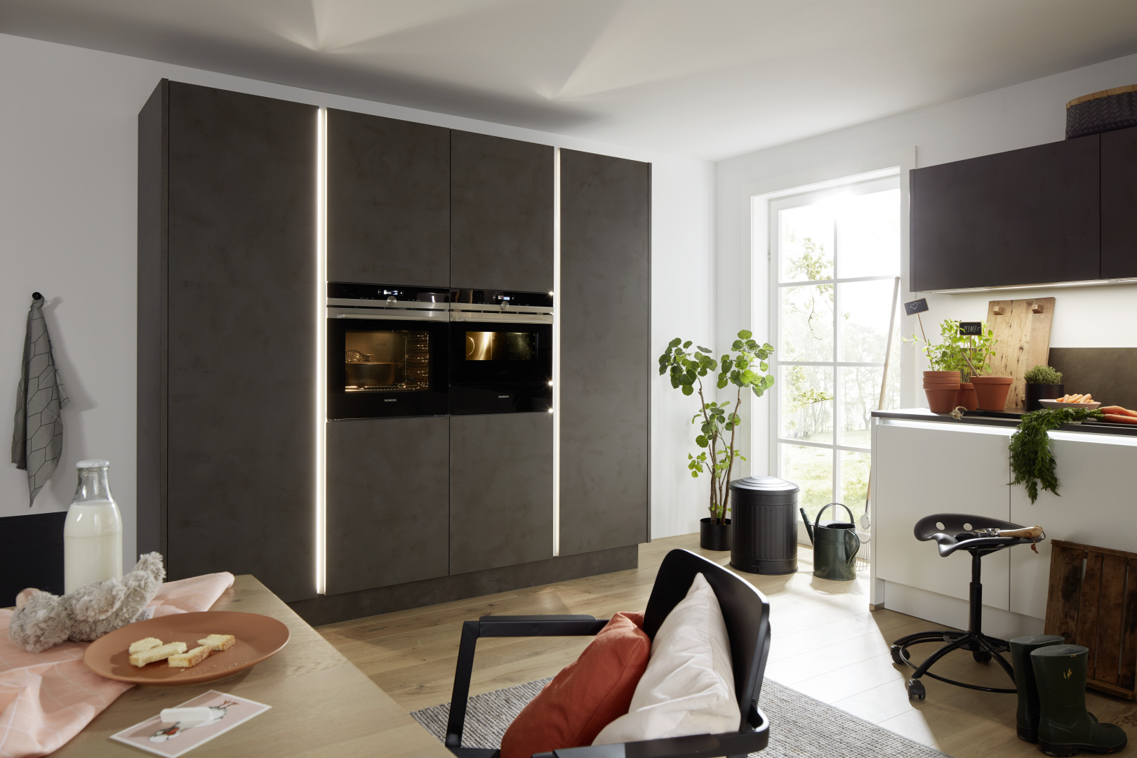 Dostatok úložného priestoru, množstvo pracovnej plochy a veľkorysý jedálenský stôl robia z tejto kuchyne centrálne miesto pre celú rodinu.
