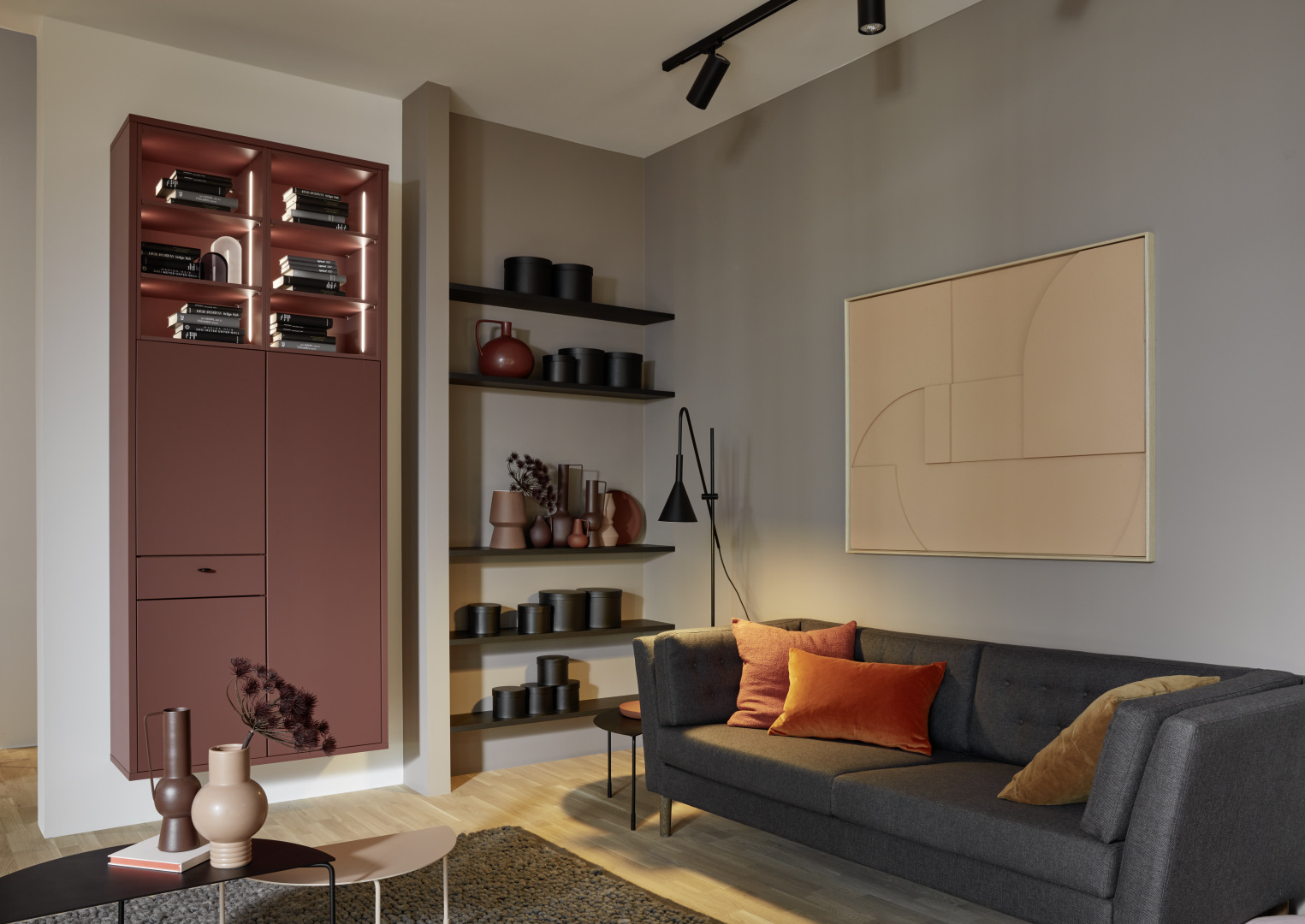 Rôzne farby našej prednej strany vyžarujú čistý život vo vašej obývačke! Kombinácia atraktívnych červených a moderných čiernych predných dielov je extravagantným mixom, v ktorom sa budete cítiť ako doma.