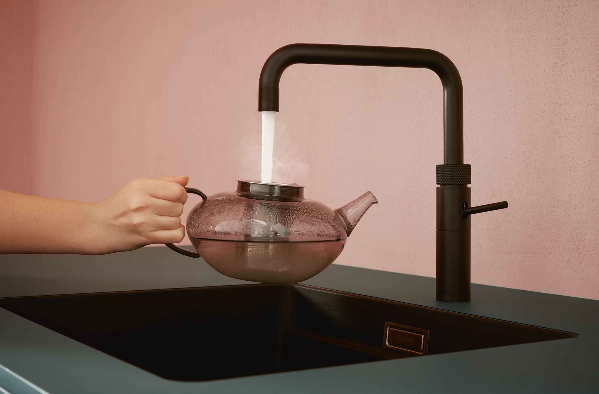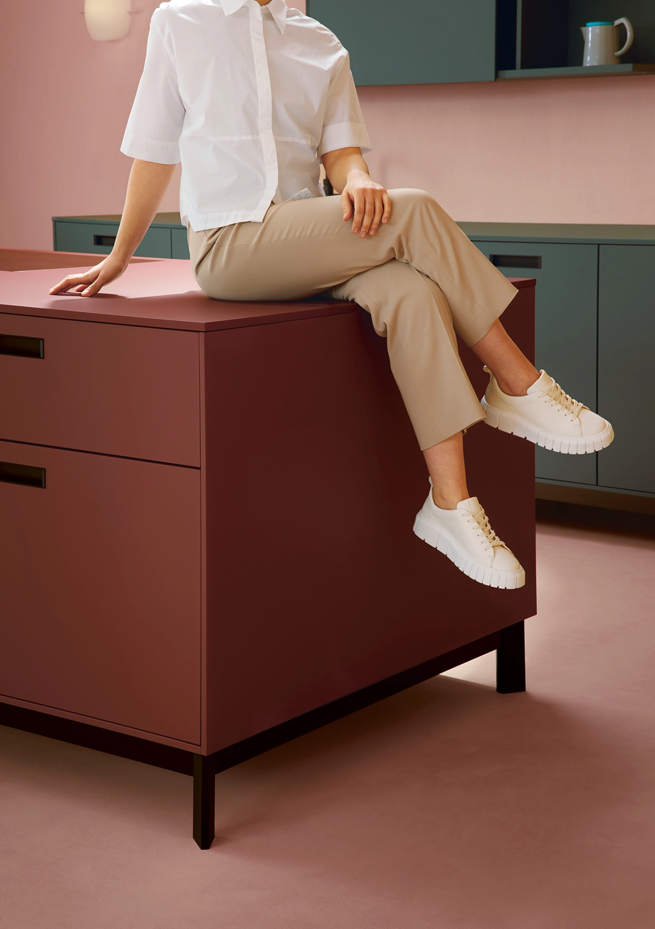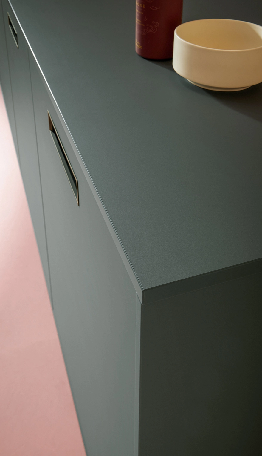 Pokiaľ ide o funkčnosť, kuchyňa splní všetky želania: systémy na čistenie vody nachádzajú svoje miesto v špeciálne navrhnutej základnej jednotke; regál s posuvnými dverami poskytuje diskrétny úložný priestor; a Flex-boxy vyrobené z tvarovaného netkaného materiálu sú zaujímavé na dotyk a ideálne na uloženie vašich najlepších príborov. Minimalistické zapustené rukoväte sa pohodlne držia a pomôžu vám udržať sa v rýchlom každodennom živote v kuchyni.