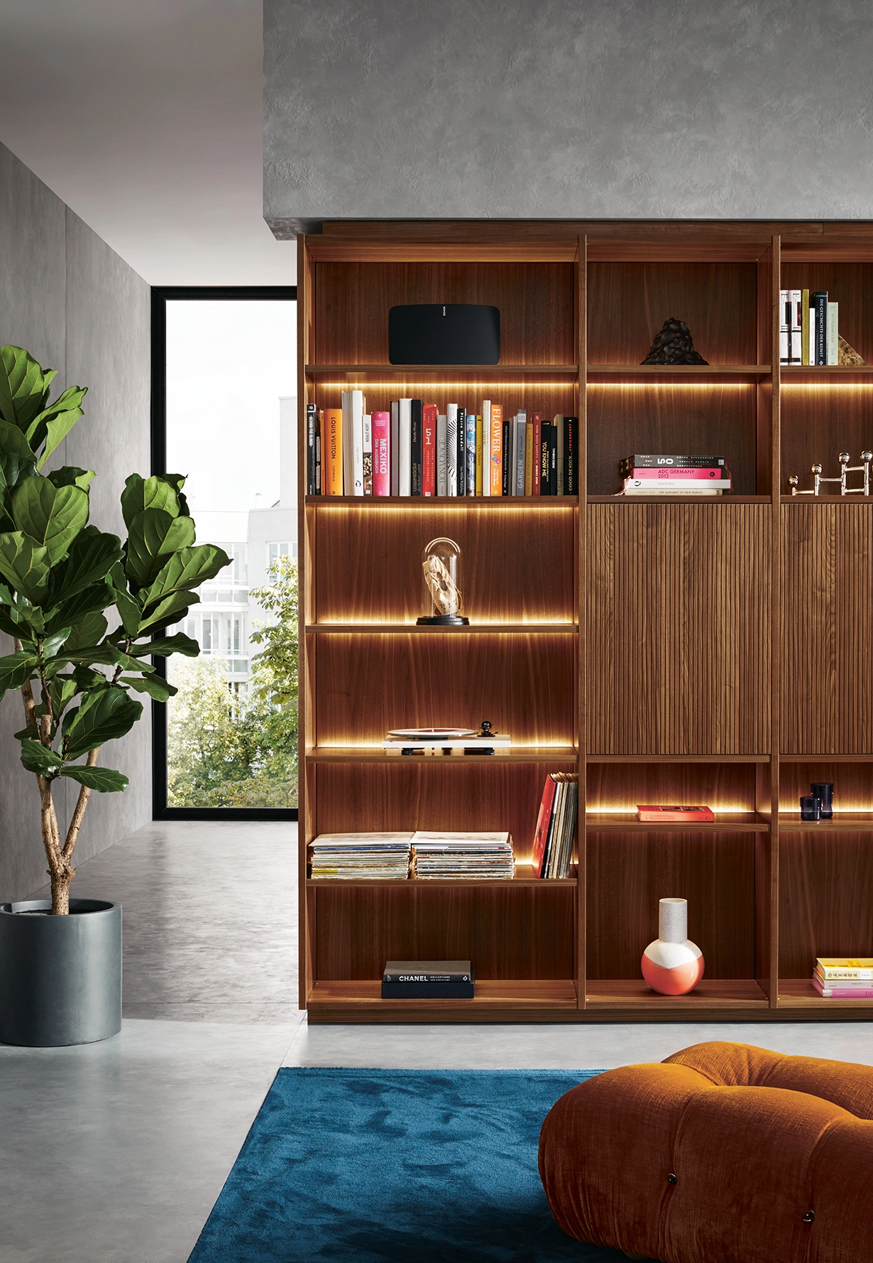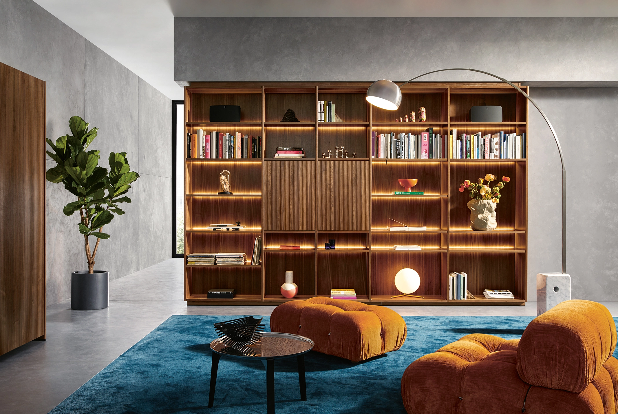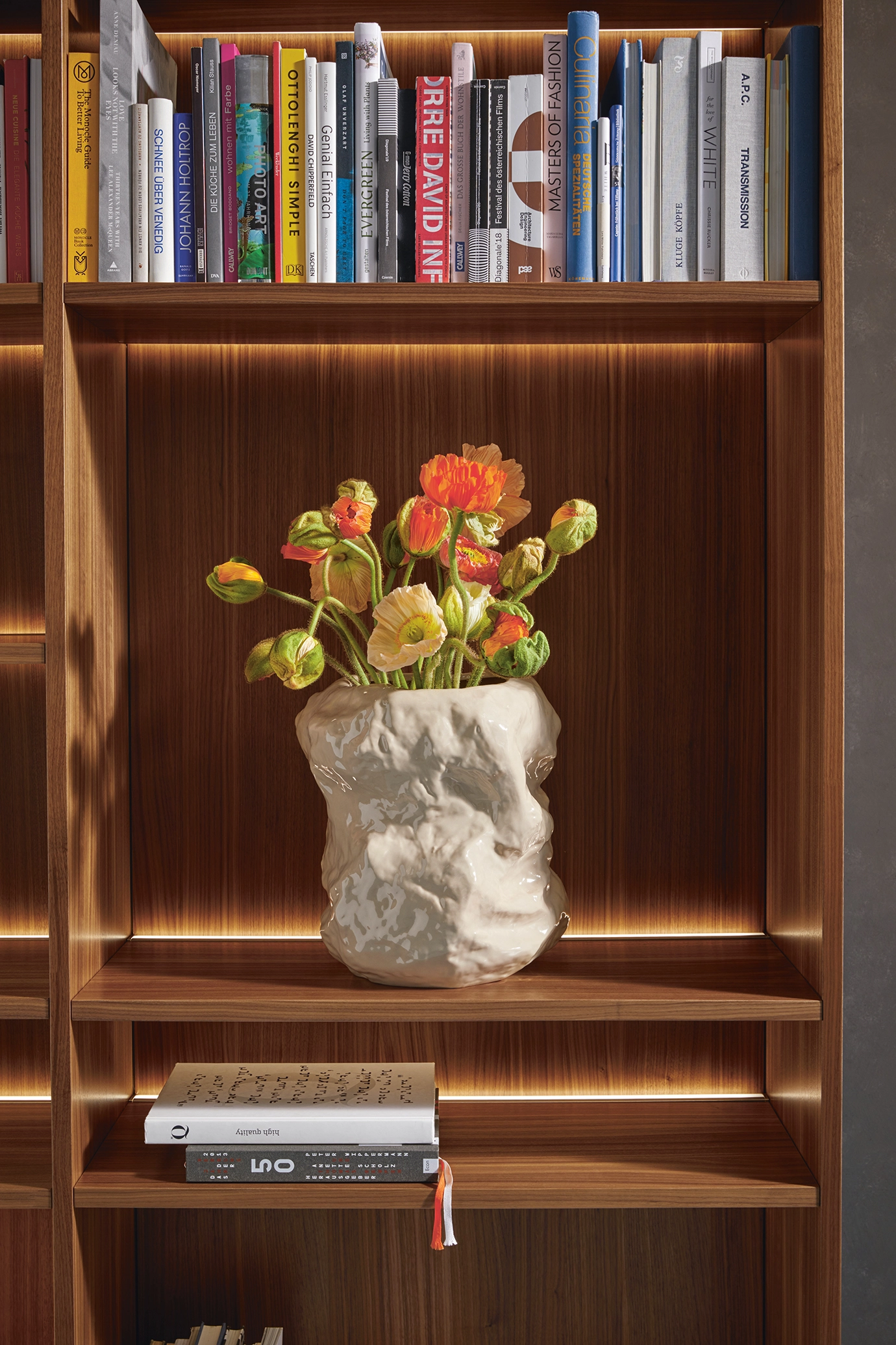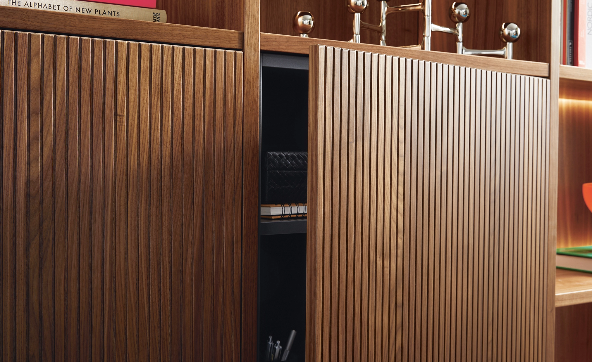 Barová časť pozostáva z vysokokvalitných rámových zapustených políc next125 a ónyxovej čiernej police s nosným panelom. Stmievateľné LED osvetlenie vytvára náladu. Zrkadlový zadný panel zobrazuje vzácne predmety a dodáva pocit hĺbky a tú správnu dávku vznešenosti.