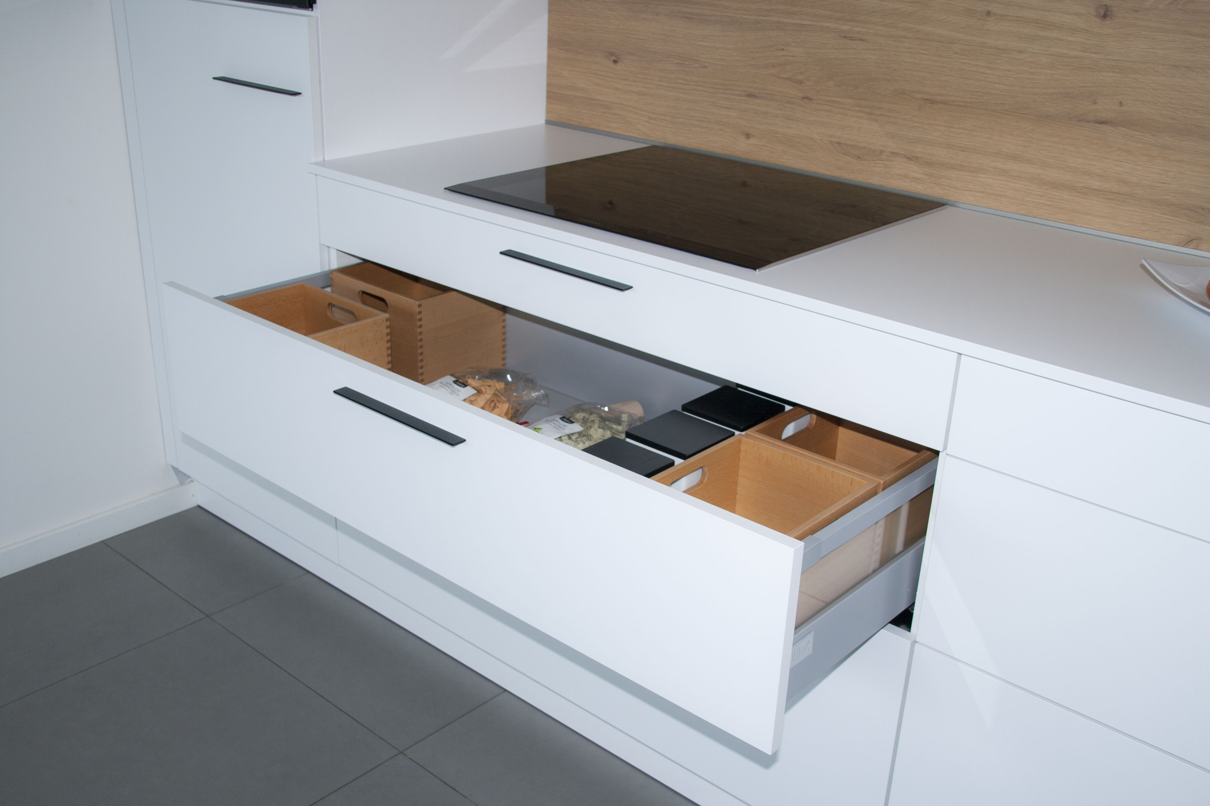 • kuchyňa je osadená elegantnými madlami v čiernej farbe