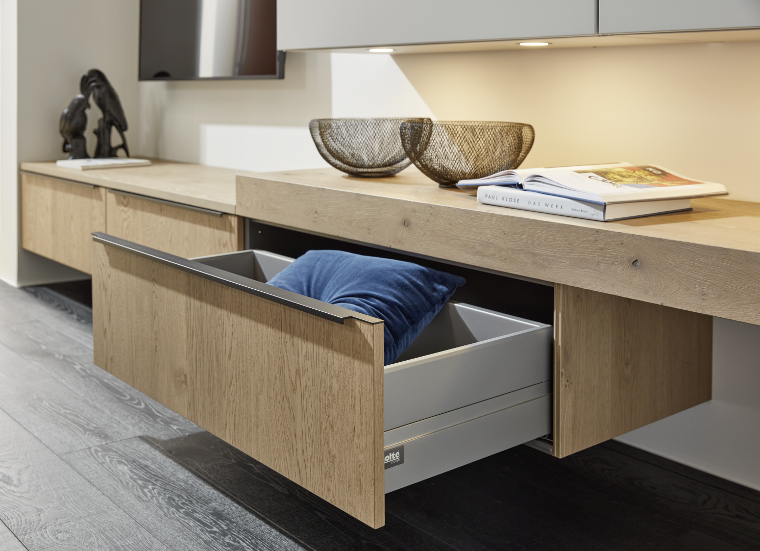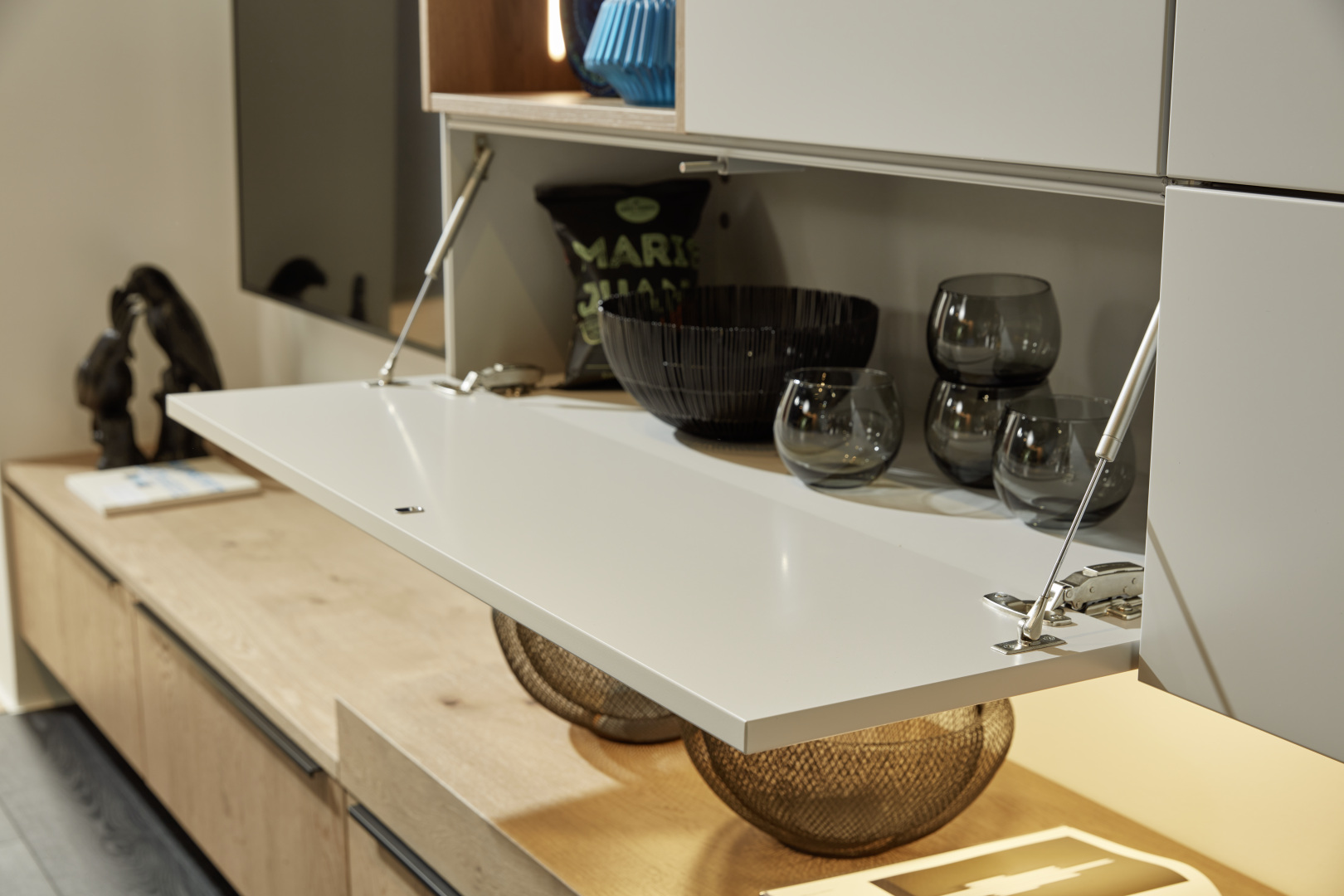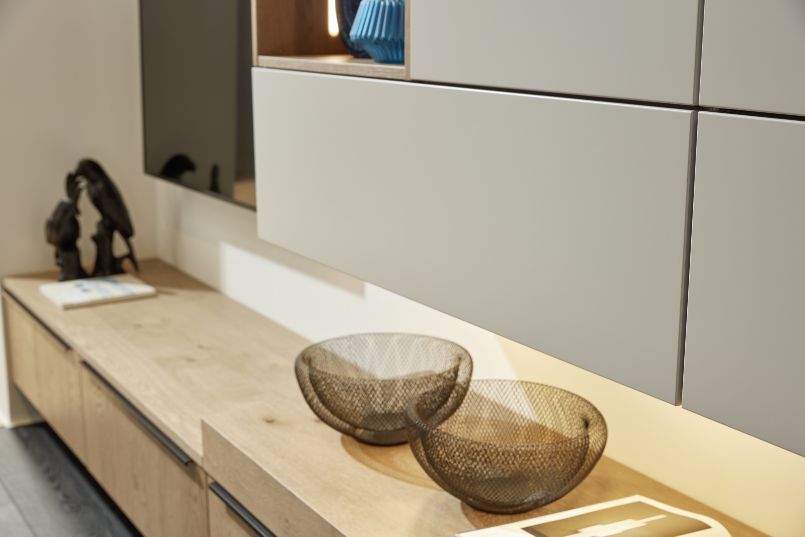 Extrémny stupeň prispôsobiteľnosti robí z tejto nástennej zostavy ideálne riešenie. Spolu s elegantným nábytkom do obývačky vyžaruje pocit čistého relaxu.