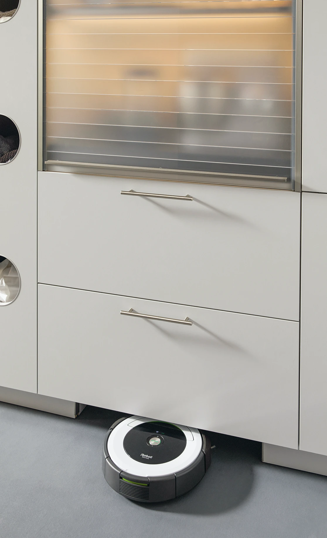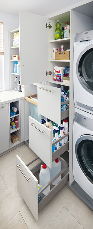 Tento dizajn, ktorý bol predtým k dispozícii len vo väčšom modeli vo forme vysokej jednotky, poskytuje priestorovo úsporný spôsob triedenia bielizne, najmä tam, kde nie je možné naplánovať vysokú jednotku. Dva zásobníky vo výsuve majú po stranách vetracie otvory a dajú sa úplne vybrať. Každá má kapacitu 42 litrov.