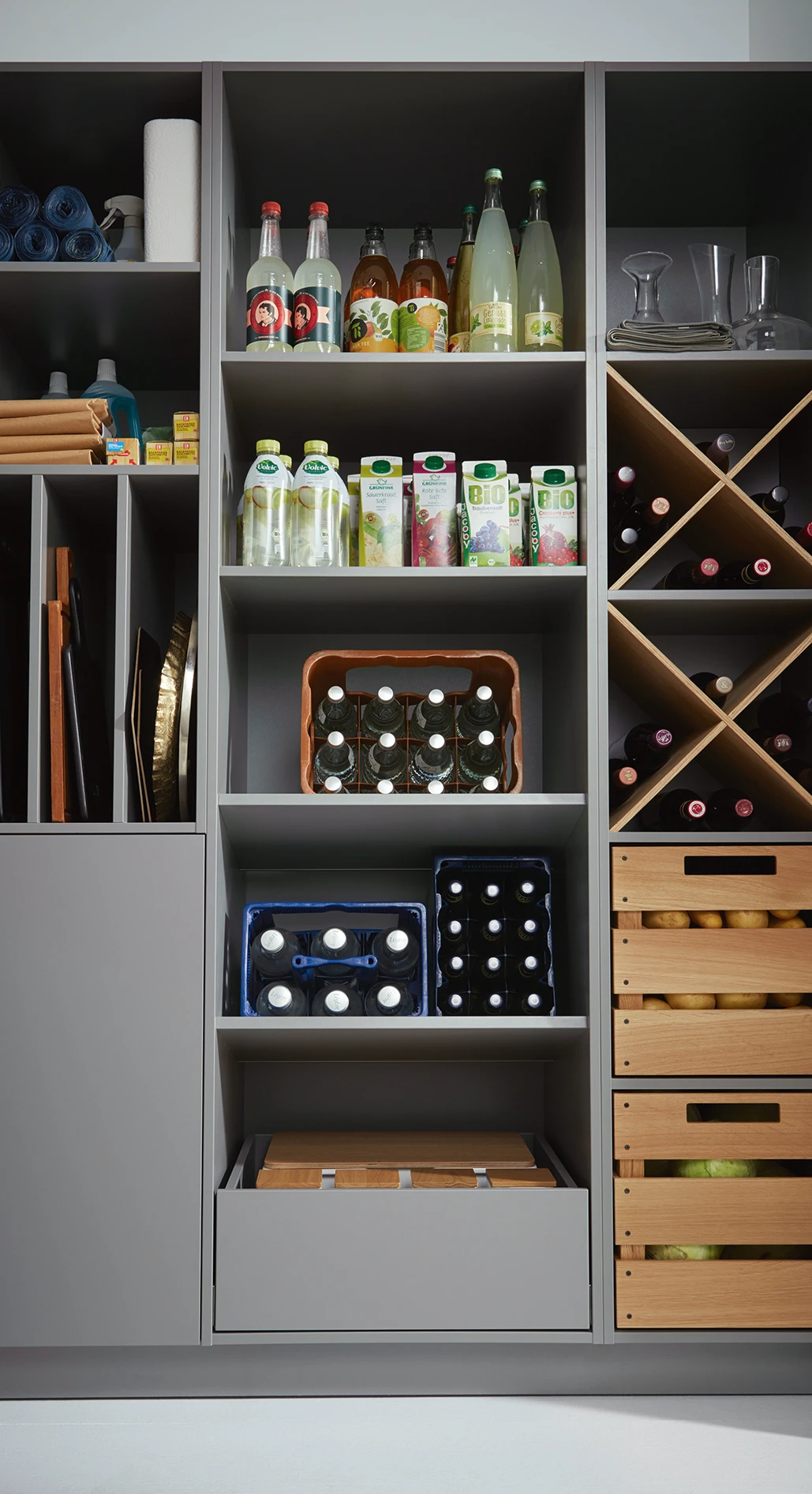 Odkedy sa kuchyňa otvorila a čoraz viac sa stáva srdcom domova, kde často už nie je pivnica, vyvstala otázka, kam umiestniť všetky veci, ktoré každý deň potrebujeme, ale nechceme, aby ich každý videl.